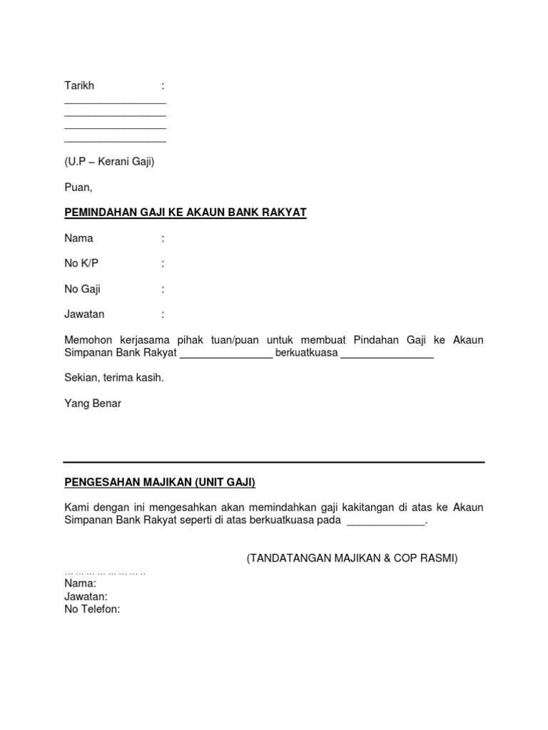 Contoh Surat Buka Akaun Bank Rakyat Latest Letter Website