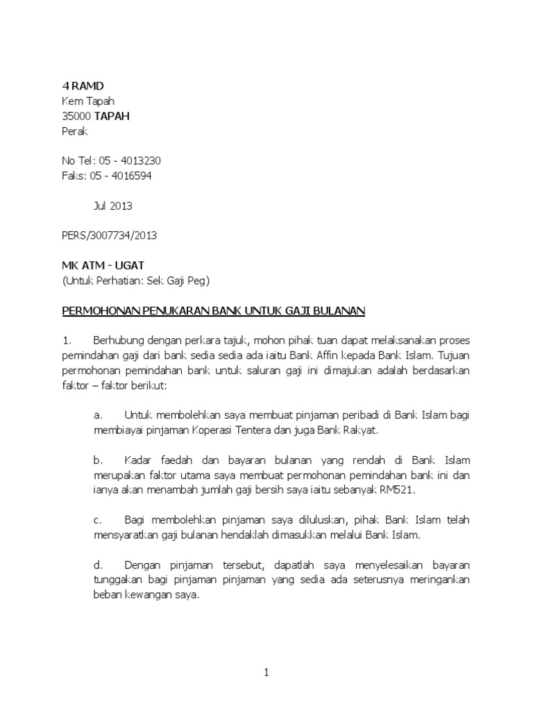 Contoh Surat Rasmi Tukar Akaun Bank Surat Rasmi W Otosection